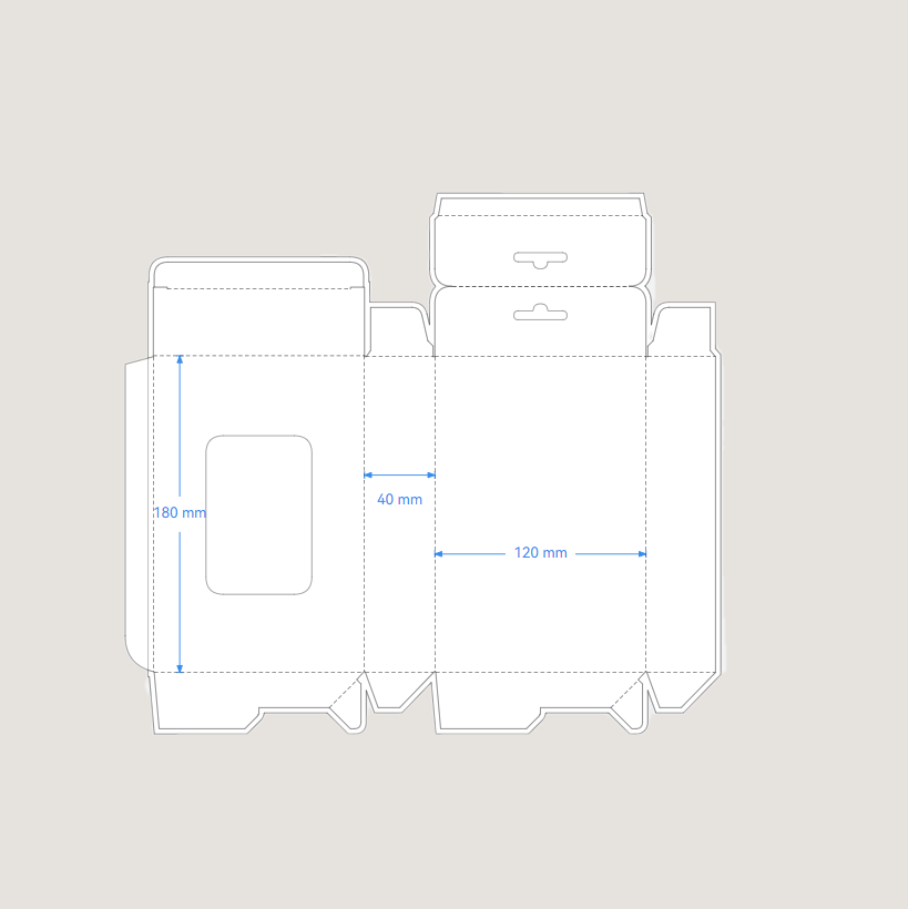 A windowed hanging box is a type of paper or corrugated cardboard packaging box with a transparent window (PET/OPP material) on the front and hanging holes on the back or top, allowing it to be hung directly on shelves or display racks to enhance display effect and product visibility.